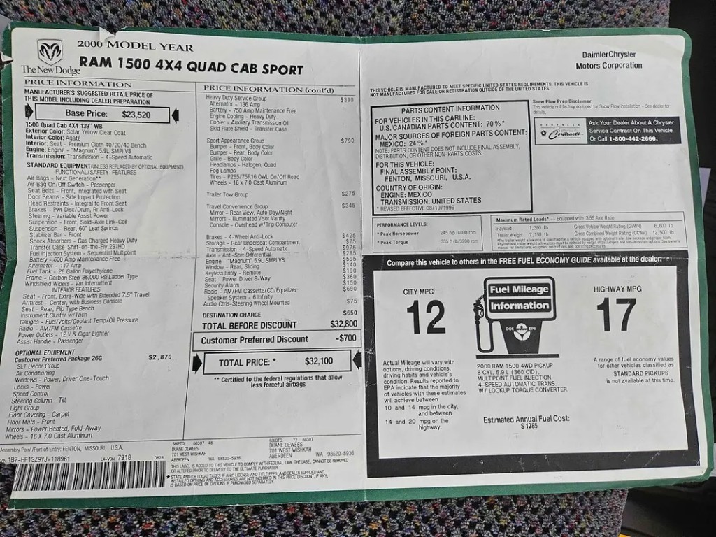 Body Style: | Quad Cab Long Bed 4WD 4-Speed Automatic |